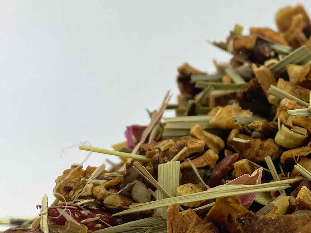 Popis Jablko, ananás (ananás, cukor, regulátor kyslosti: kyselina citrónová), mango (9,4 %) (mango, cukor, regulátor kyslosti: kyselina citrónová), bobule goji, citrónová tráva (6,1 %), ruža, lístky mäty, aróma. Nutričné údaje na 100 ml: