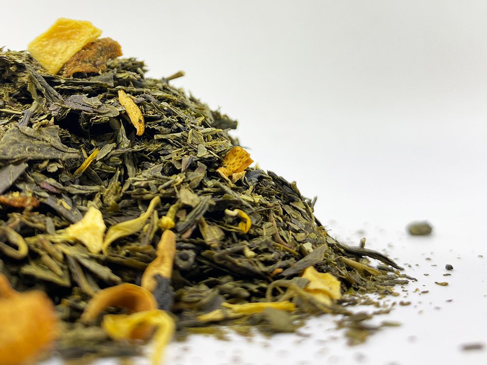 Popis Sencha zelený čaj a pušný prach v kombinácii s guavou 4% (jablkové pyré, antioxidant: kyselina askorbová, guava pyré, jablková šťava), marakujou 2,7%, pomarančovými kvetmi a nechtíkom. Vychutnajte si teplé alebo studené bez cukru. Nutričné údaje na 100 ml: Energia 18 kJ />4 kcal. Tuky < 0,1 g z toho nasýtené < 0,1 g. Sacharidy < 0,1 g z toho cukry < 0,1 g. Bielkoviny <0,1 g. Soľ <0,3 g.