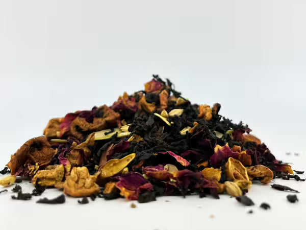 Popis Obľúbená príchuť Štedrého dňa. Čierny čaj s kúskami jabĺk, jačmenný slad, mandle (3%), okvetné lístky ruží, prírodná pomarančová príchuť, aróma. Výživové údaje na 100 ml: Energia 13 kJ />3 kcal. Tuky < 0,1 g z toho nasýtené < 0,1 g. Sacharidy < 0,7 g z toho cukry < 0,3 g. Bielkoviny <0,1 g. Soľ <0,1 g.