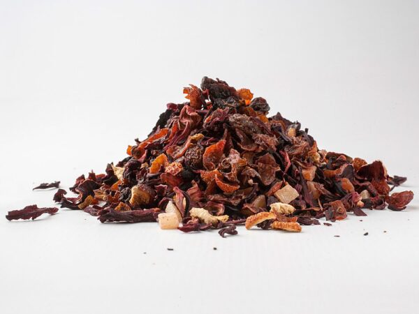 Popis Ibištek, šípky, hrozienka (hrozno, trstinový cukor, regulátor kyslosti: kyselina citrónová), ananás (ananás, trstinový cukor, regulátor kyslosti: kyselina citrónová), mango (mango, trstinový cukor, regulátor kyslosti: kyselina citrónová), pomarančová kôra, papája (papája, cukor z cukrovej trstiny, regulátor kyslosti: kyselina citrónová), aróma. Bez kofeínu. Nutričné údaje na 100 ml: