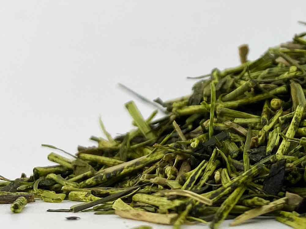 Popis Vzácny čaj vyrábaný iba v Japonsku: Známy ako "čaj z listov stonky". Stále zelené, nezdrevnatené časti stoniek čajovníka (tzv. stopky) sa miešajú s klasickými listami Sencha, čím vytvárajú atraktívny kontrast. Čaj s výraznou vôňou a chuťou. Kvetinová dochuť. Nutričné údaje na 100 ml: