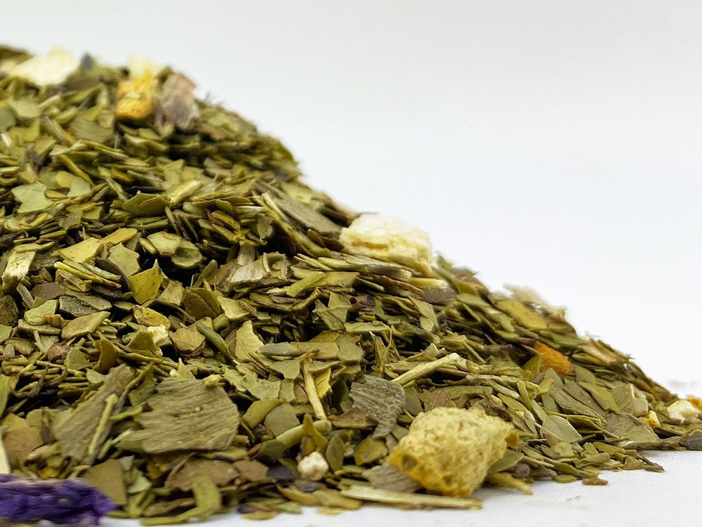 Popis Maté (81%), listy ginkgo biloby, pomarančová kôra a kvety, guarana, mrazom sušená guava (jablkové pyré, antioxidant: kyselina askorbová, guava pyré, koncentrovaná jablková šťava), slez, aróma. Je to obľúbený nápoj v Južnej Amerike, kde ho konzumujú počas celého dňa. Špeciálna chuť a veľmi tonikum. Ideálny ranný nápoj. Nutričné údaje na 100 ml: Energia 18 kJ /4 kcal. Tuky < 0,1 g z toho nasýtené < 0,1 g. Sacharidy < 0,1 g z toho cukry < 0,1 g. Bielkoviny <0,1 g. Soľ <0,03 g.