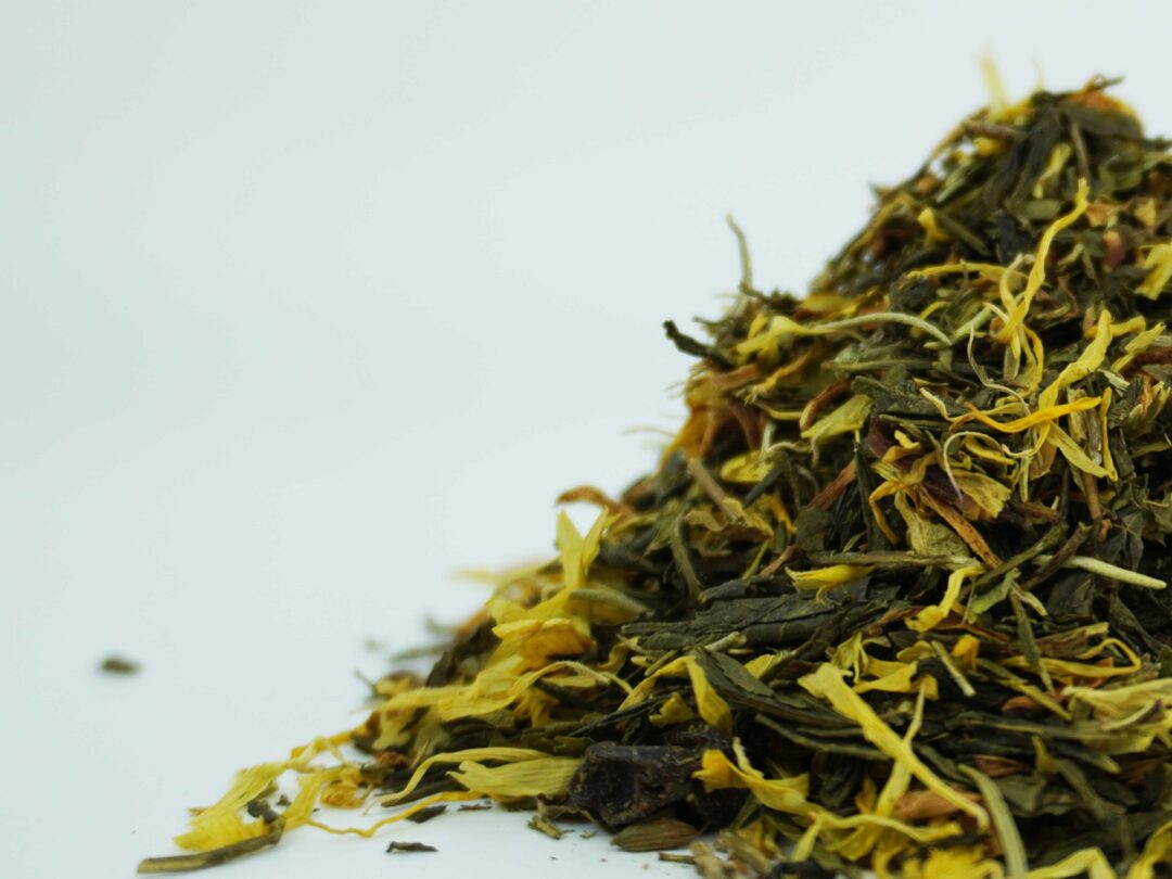 Popis Zelený čaj Sencha (52%), hrozienka (hrozienka, slnečnicový olej), plátky citróna, mäta, kvety pomaranča, kvety nechtíka, list mäty, rozmarín, prírodná aróma Nutričné údaje na 100 ml: